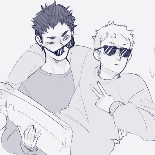 canon! they're both very chill and relaxed, laid back guys. they take the same train to school together. they're often portrayed to be into pop culture bc they say quirky things . hanamaki says 'LMAO' out loud. (hq is set in 2013 dont make fun of him man)